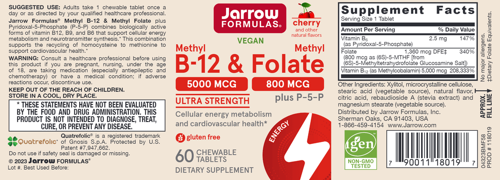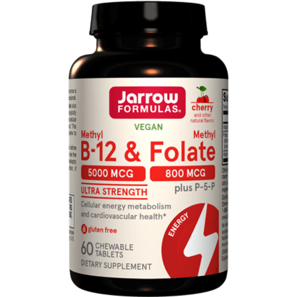 Jarrow Formulas® Methyl B-12, Methylfolate Plus Pyridoxal-5-Phosphate (P5P) combines the biologically active coenzyme forms of vitamin B-12, B-9 and B-6 to support DNA and neurotransmitter synthesis, and carbohydrate, fat and amino acid metabolism.