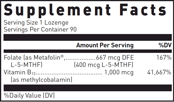 Methyl B12 Plus provides Metafolin® L-methylfolate and vitamin B12 methylcobalamin in a great-tasting lozenge designed to be rapidly dissolved in the mouth and swallowed. Methylfolate and methylcobalamin are the predominant forms of folate and vitamin B12 found in the body. Methyl B12 Plus lozenges are sweetened naturally with xylitol, mannitol and flavored with natural black cherry and vanilla.