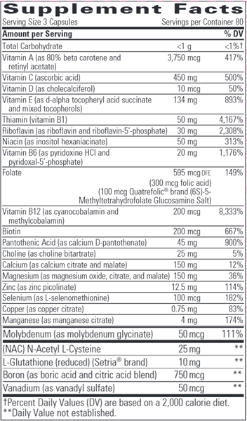 A comprehensive, hypoallergenic multivitamin-mineral supplement. Formulated for maximum bioavailability with activated coenzyme forms of vitamins B2 and B6, flush-free inositol hexaniacinate, and mineral citrates and malates.