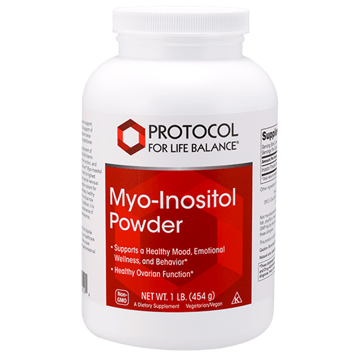 Inositol is a necessary component of all cellular membranes. It is a member of the B-Vitamin family that contributes to muscular and nerve function, and participates in the metabolism of fats in the liver. Myo-Inositol is the most abundant form of this nutrient, with its highest concentrations being found in the brain and central nervous system. Myo-Inositol in particular is a versatile nutrient for the promotion of emotional and mental wellness, healthy eating patterns, and restful sleep through its critical role in neurotransmitter messaging systems. In addition, it is an important nutritional element for the maintenance of ovarian health and normal blood sugar maintenance, especially in women.