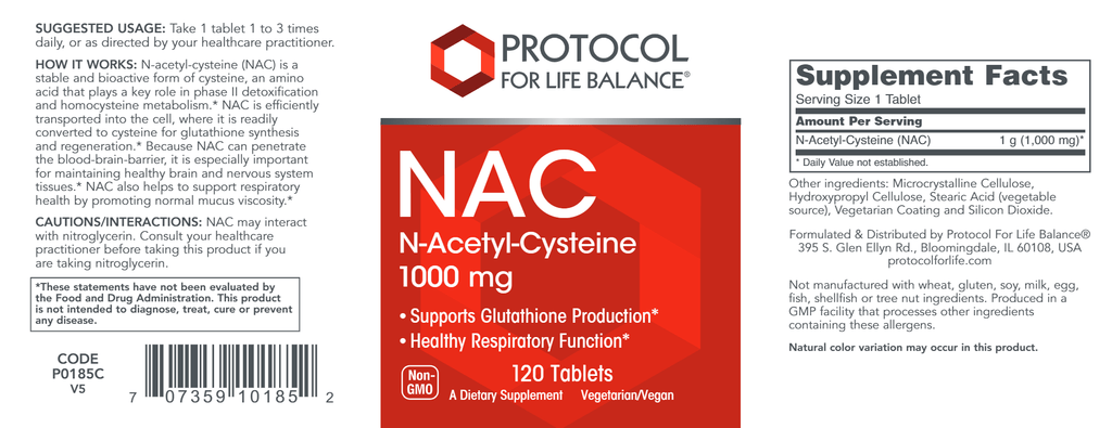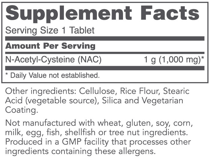 N-acetyl-cysteine (NAC) is a stable and bioactive form of cysteine, an amino acid that plays a key role in phase II detoxification and homocysteine metabolism.* NAC is efficiently transported into the cell, where it is readily converted to cysteine for glutathione synthesis and regeneration.* Because NAC can penetrate the blood-brain-barrier, it is especially important for maintaining healthy brain and nervous system tissues.* NAC also helps to support respiratory health by promoting normal mucus viscosity.*
