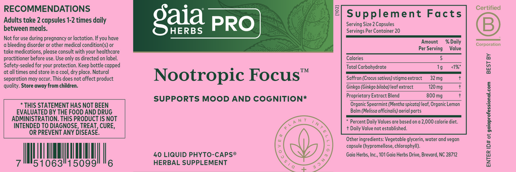 Nootropics — supplements that support mental performance — can play an important role in maintaining cognitive health.* Gaia Herbs Nootropic Focus offers all the powerful benefits of Nootropics as Nature intended, using traditional herbs to nourish your mind to help you keep up with life’s demands.*