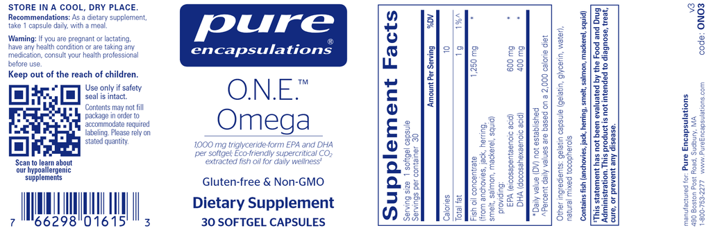 O.N.E Omega is a powerful omega-3 fatty acid formula for cardiovascular, joint, skin and cognitive health.