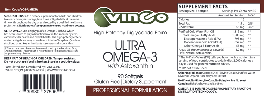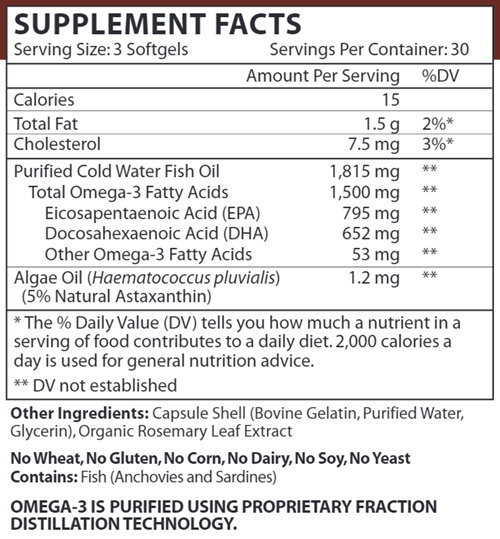 ULTRA OMEGA-3 is a highly concentrated and pure source of Omega-3 Fish Oil, necessary for human nutrition. Our OMEGA-3 Fish Oil is from short-lived, pelagic (open waters; not near the coast or bottom feeding) fish. It is purified using proprietary fraction distillation technology to remove all toxins without damaging delicate EPA and DHA Omega-3’s. Highly purified (proprietary fraction distillation technology) and concentrated OMEGA-3 Fish oil