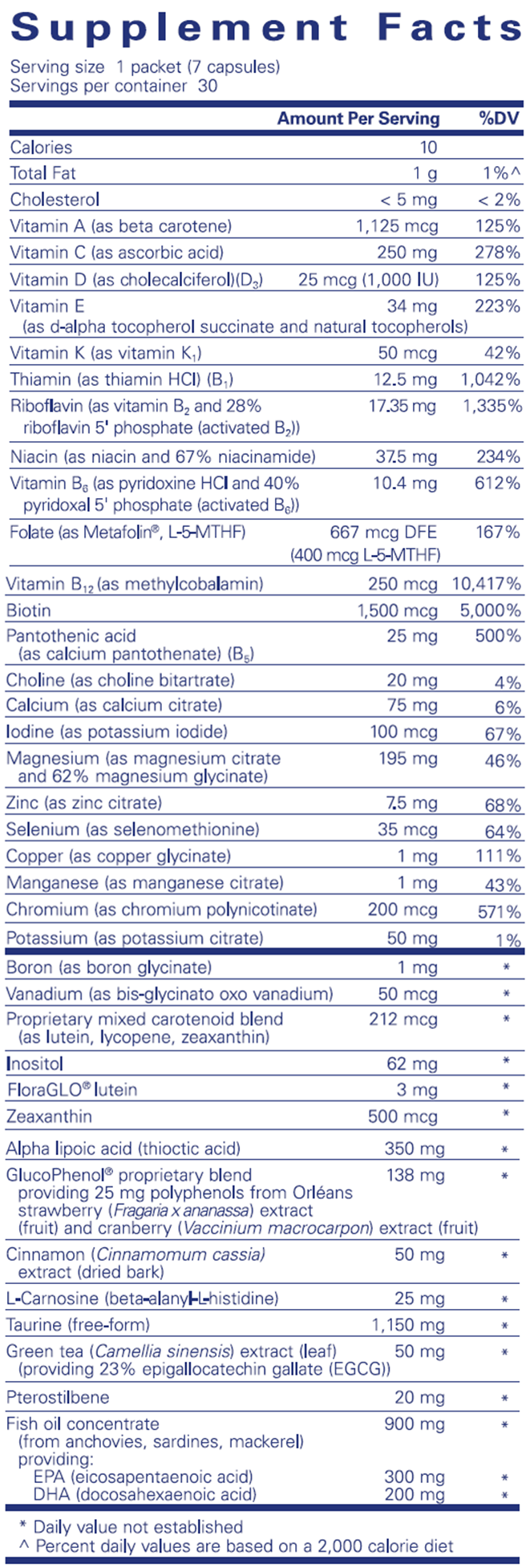 As a dietary supplement, take 1 packet daily (7 capsules), with a meal.