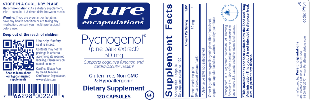 Pycnogenol is a pine bark extract that provides antioxidant support to promote the health of blood vessels and overall vascular health. Pycnogenol helps stabilize collagenous membranes and support vascular integrity.