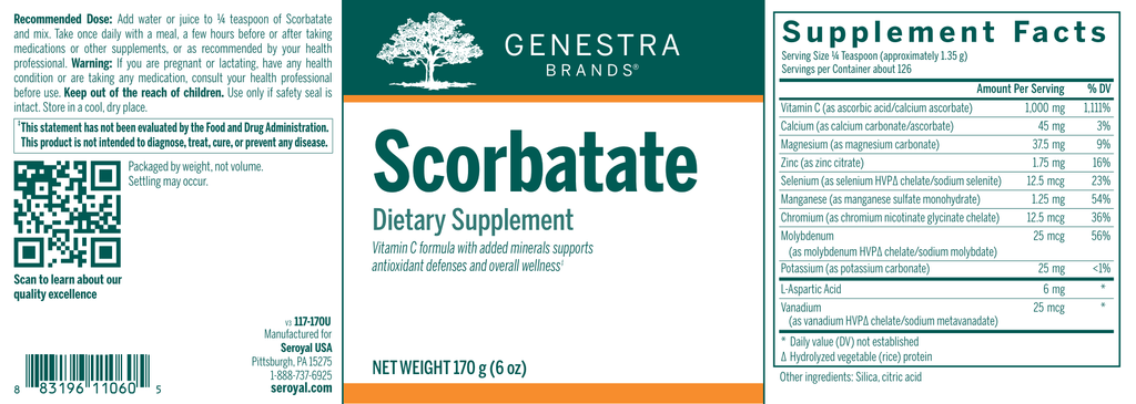 Add water or juice to ¼ teaspoon of Scorbatate and mix. Take once daily, or as recommended by your health care practitioner.