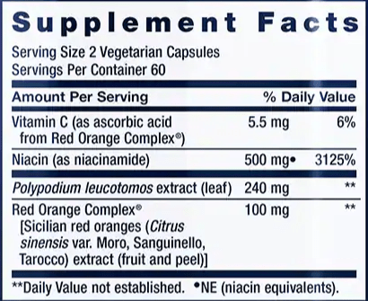 Even moderate ultraviolet exposure can take a toll on skin health. Shade Factor™ is an oral formula that uses three ingredients to support the body’s natural immune response to UV exposure: niacinamide, Polypodium leucotomos extract and Red Orange Complex®.
