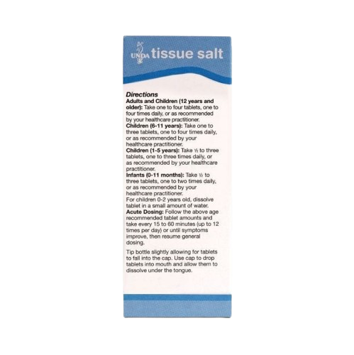 Schessler Tissue Salts act on the cellular level to balance and restore cell function. UNDA Tissue Salts are prepared using methods based on Dr. W. H. Schessler Biochemical System of Medicine (in accordance with the German Homeopathic Pharmacopeia [HAB]).