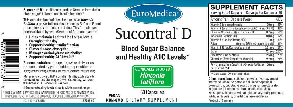 Sucontral® D is a clinically studied German formula for healthy blood sugar† balance and insulin function.*