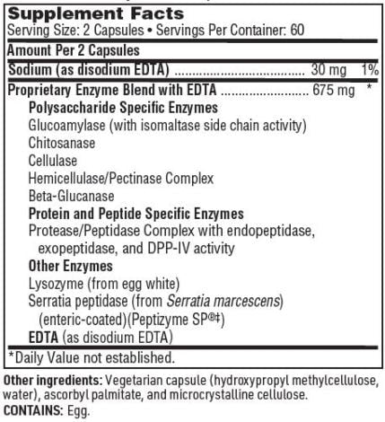 Adults: Depending on age and size, take 2 capsules, 1 to 4 times daily between meals or as directed by a healthcare professional. Should be taken away from meals to maximize the enzyme effects. Children: As directed by a healthcare professional.
