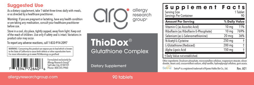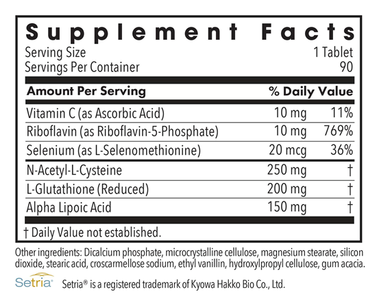 L-Glutathione (reduced), N-Acetyl-L-Cysteine and Lipoic Acid, with supportive nutrients. ThioDox® contains nutrients that support liver detoxification function, glutathione production, and antioxidant activity.*