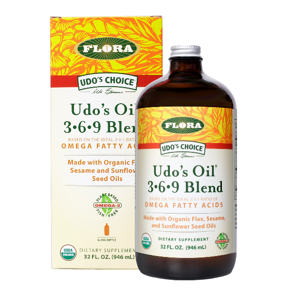 Udo’s Oil® Omega 3 • 6 • 9 Blend is a foundational oil that provides the omega-3 and omega-6 essential fatty acids (EFAs) the body needs but cannot make on its own – they must be obtained from our diet. This plant-sourced, organic unrefined oil blend is designed to provide the ideal 2-to-1 ratio of omega-3 and omega-6 fatty acids. Omega-9, a monounsaturated fatty acid is featured in the Mediterranean diet, touted as one of the healthiest diets known for its benefits to cardiovascular health. Award-winning Udo’s Oil® Omega 3 • 6 • 9 Blend contains all the good fats you need without the bad fats you should avoid, with natural, unrefined oils from fresh, certified organic flax, sunflower, sesame, and evening primrose seeds as well as oils from coconut, and oat and rice bran.