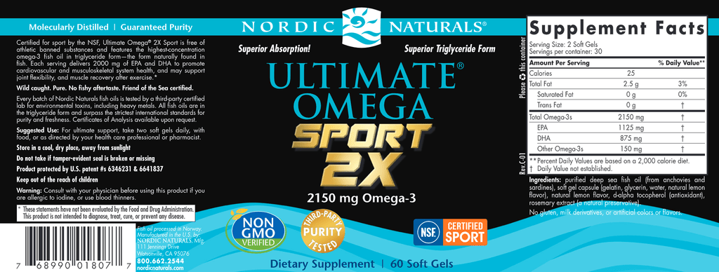 Ultimate Omega® 2X Sport offers unmatched support for musculoskeletal and cardiovascular system health in a formula that’s certified safe for athletes and active adults.