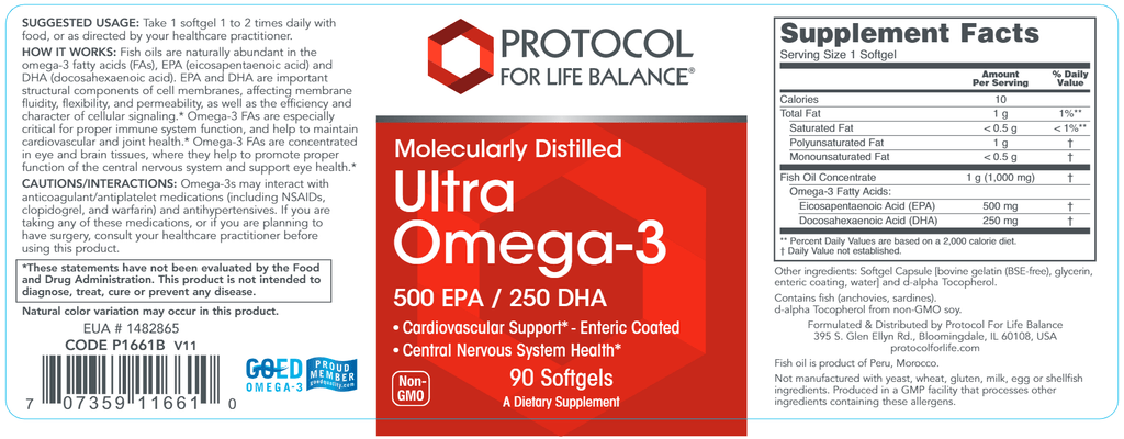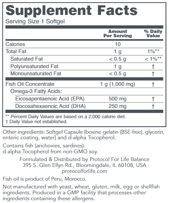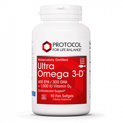 Fish oils are naturally abundant in the omega-3 fatty acids (FAs), EPA (eicosapentaenoic acid) and DHA (docosahexaenoic acid). These FAs are concentrated in eye and brain tissues, where they help to promote proper function of the central nervous system and support eye health.* Omega-3 FAs are also critical for proper immune system function, and help to maintain cardiovascular and joint health.* Ultra Omega 3-D™ is our most potent omega-3 formula, with 600 mg EPA and 300 mg DHA per softgel. This product is flavored with lemon oil and also provides 1,000 IU vitamin D3.