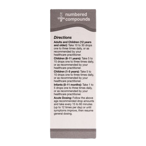 UNDA Numbered Compounds are unique remedies synergistically formulated with plant constituents that target and carry potentized metals to specific organs where enzymatic and metabolic functions are carried out on a cellular level helping to facilitate the drainage of toxins.