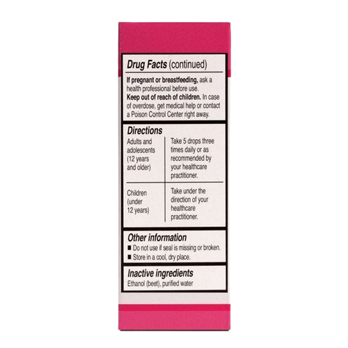 Recommended Dose: Adults and Children (12 years and older): Take 10 to 30 drops one to three times daily, or as recommended by your healthcare practitioner.