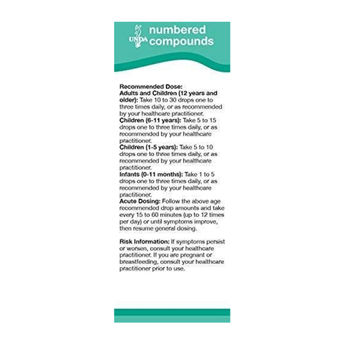 UNDA Numbered Compounds are unique remedies synergistically formulated with plant constituents that target and carry potentized metals to specific organs where enzymatic and metabolic functions are carried out on a cellular level helping to facilitate the drainage of toxins.