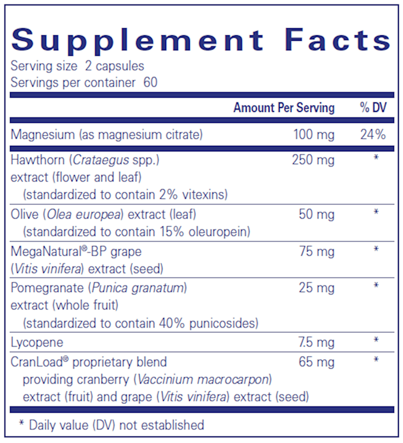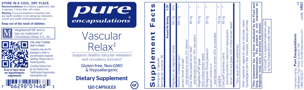 Vascular Relax promotes vascular relaxation, endothelial function and circulatory function for optimal heart health. Vascular Relax also promotes antioxidant activity and protection.