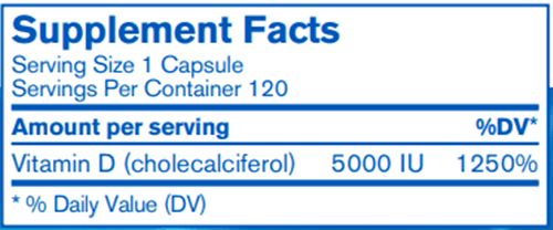 Vitamin D 5000 IU contains vitamin D naturally derived from lanolin. There are very few dietary sources of vitamin D, so supplementation is often required. Vitamin D supports healthy bones and teeth, and promotes the absorption and utilization of the minerals calcium and phosphorus.