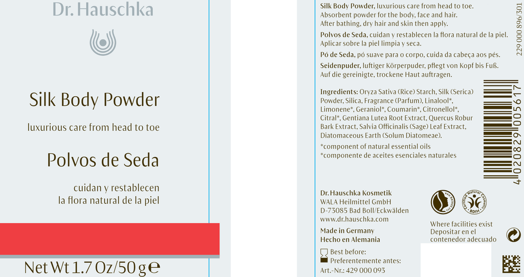 Formulation: Silk powder is nearly the same protein composition as the skin, making for easy compatibility. Gentian and oak extracts cool and refresh. Sage extract supports healthy skin and scalp.