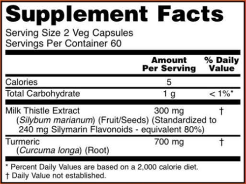 Silymarin (Silybum marianum), also known as milk thistle, has been used by traditional herbalists for centuries. Scientific studies have indicated that constituents in silymarin may help to support healthy liver function.* This vegetarian formula also includes turmeric for additional support.*