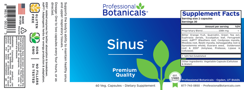 Professional Botanicals' Sinus formula supports the body’s ability to maintain healthy sinus and upper respiratory tissues.*