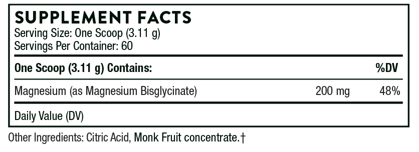 Magnesium Bisglycinate: Mix 1 level scoop (4 grams) with 8 ounces of water one to two times daily.