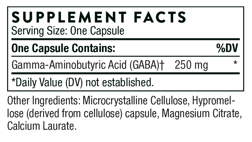 PharmaGABA-250 contains the natural form of gamma-aminobutyric acid (GABA), a major calming brain chemical – or neurotransmitter.* Clinical studies indicate that GABA decreases the brain's stress-related beta waves and increases the production of alpha-waves, which creates a profound sense of physical relaxation while maintaining mental focus.* Other studies show reduced pupil diameter, heart rate, and levels of two natural biomarkers of stress – salivary cortisol and chromogranin A – all signs of relaxation.* In addition, studies also indicate GABA enhances sleep.*
