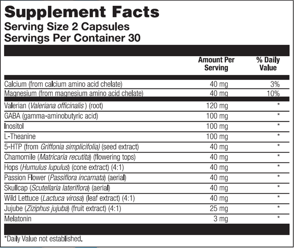 Use only as directed. Take 1-2 capsules 30-45 minutes before bed or as directed by your healthcare practitioner.