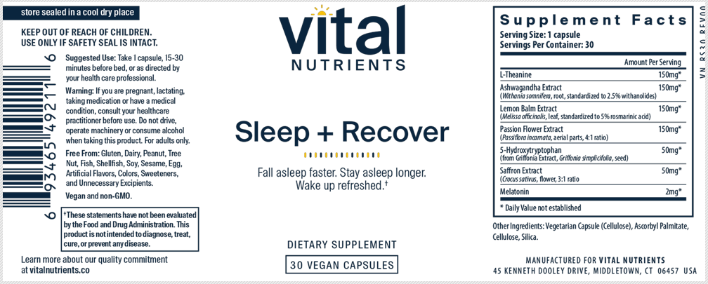 Sleep and Recover is a unique formula featuring seven clinically studied ingredients designed to help you fall asleep faster, stay asleep longer, and wake up refreshed.* This combination supports restorative sleep by balancing the stress response and supporting relaxation and recovery cycles with the healthy function of key metabolic, hormone, and neurotransmitter systems that influence sleep cycles.* This vegan, allergen-free product comes in a single capsule serving for convenience and support of sleep quality.*