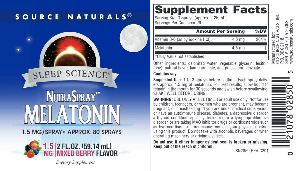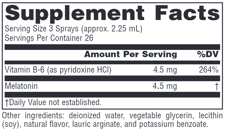 1 to 3 sprays before bedtime. Each spray delivers approx. 1.5 mg of melatonin. For best results, allow liquid to remain in the mouth for 30 seconds and swish before swallowing Shake well before use.