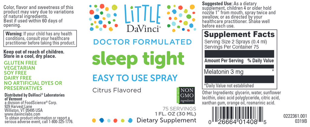 Supplementing with melatonin can help your child have a healthy night’s rest.* Convenient and great tasting, DaVinci® Laboratories’ sleep tight is perfect for kids who have trouble calming down at bedtime. It can help kids fall asleep more quickly, and it can help them sleep longer.* Melatonin supports healthful sleep, cognitive performance, mental health, and attention span.*