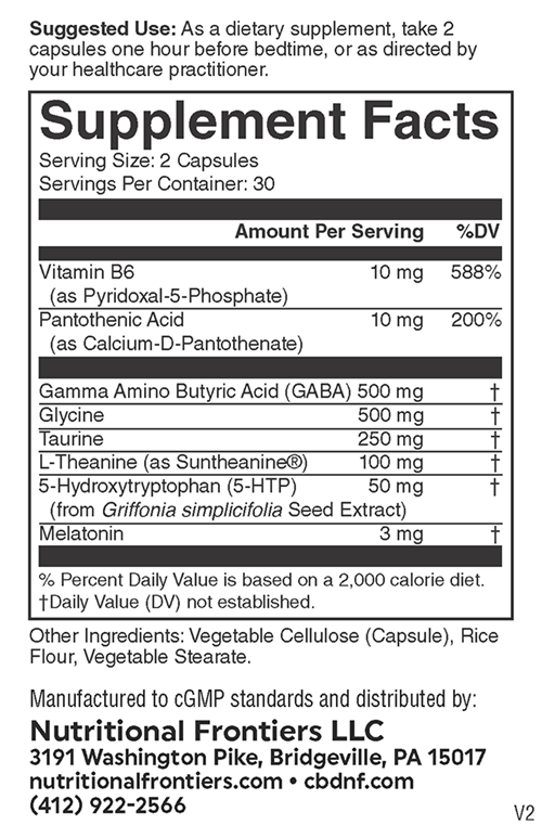 As a dietary supplement, take 2 capsules one hour before bedtime, or as directed by your healthcare practitioner.