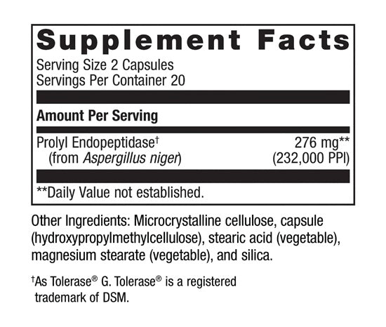 Notice: Tolerase® G is not intended to replace a gluten-free diet. Tolerase® G is not intended to treat or prevent celiac disease.