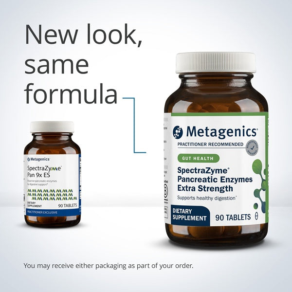 SpectraZyme® Pancreatic Enzymes Extra Strength—formerly SpectraZyme® Pan 9x ES—is a comprehensive enzyme complex that provides support for digestive function. The porcine pancreatic concentrate is processed under special conditions so that the delicate enzyme constituents remain intact. Provides twice the digestive enzyme strength of regular pancreatic enzymes.*