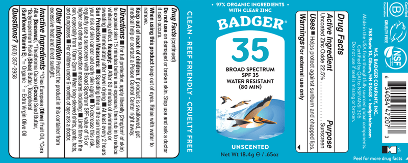 Clean, moisturizing and portable SPF 35 face stick for active lifestyles. Convenient, easy-to-pack mineral protection with 80 minutes of water resistance. Crafted with 6 simple ingredients, including organic cocoa and shea, this pocket-sized sun stick glides over nose, cheeks, lips and ears for skin-soothing protection. Unscented, hypoallergenic, and 97% organic ingredients.