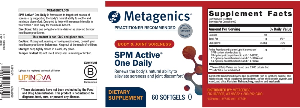 SPM Active® One Daily renews the body’s natural ability to alleviate soreness and joint discomfort. SPM Active One Daily is formulated to target root causes of soreness by supporting the body’s natural ability to soothe and minimize discomfort. Designed to help with soreness intensity in two weeks.*