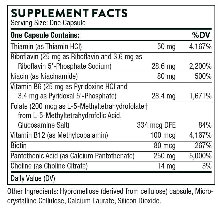 Stress B-Complex contains an optimal balance of essential B vitamins, with extra vitamin B5 to support healthy adrenal and immune function.*