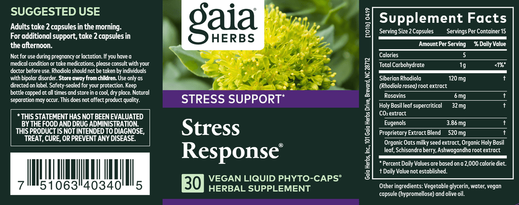 To combat stress and live a more balanced life, it’s essential to optimize adrenal gland function. Gaia Herbs Stress Response® contains a synergistic blend of five Adaptogens traditionally known for helping the body cope with stress in a healthy way.*