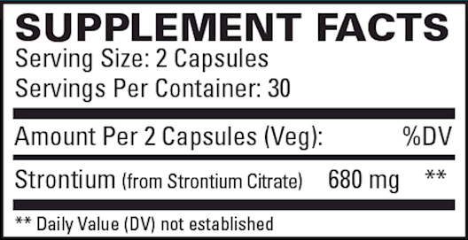 Recommendations: 2 capsules daily, or as directed by your healthcare practitioner. Studies suggest that, for better bioavailability, strontium should be taken more than two hours before or two hours after taking a calcium supplement. Strontium is absorbed using calcium transport mechanisms, and should not be taken at the same time as calcium supplements.