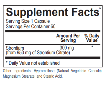 Strontium is a mineral that is similar physical and chemical properties to calcium. Research has shown strontium provides all-natural bone support through its ability to naturally increase the formation of osteoblasts (cells that build up bone) and slow down the formation of osteoclasts (cells that break down bone tissue), helping to maintain healthy bone density.