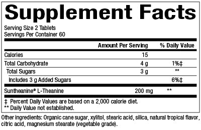 Suntheanine® contains pure L-Theanine, a unique amino acid found in green tea that is emerging as the premier natural product to support mental calmness and relaxation.* Suntheanine® is produced via a proprietary enzymatic process, guaranteeing essentially pure L-Theanine for maximum effectiveness.* In a tasty tropical fruit-flavored chewable tablet.