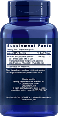 Curcumin is a bona-fide super food—but its hard to absorb. So we make our curcumin formula with the highly-absorbable BCM-95® Bio-Curcumin® extract. BCM-95® is up to seven times more absorbable than standard curcumin. BCM-95® stays in your bloodstream longer as well.