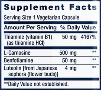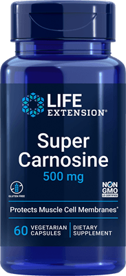 Super Carnosine is a muscle support supplement that offers antioxidant defense, as well as luteolin, benfotiamine, and vitamin B1 to help inhibit glycation.