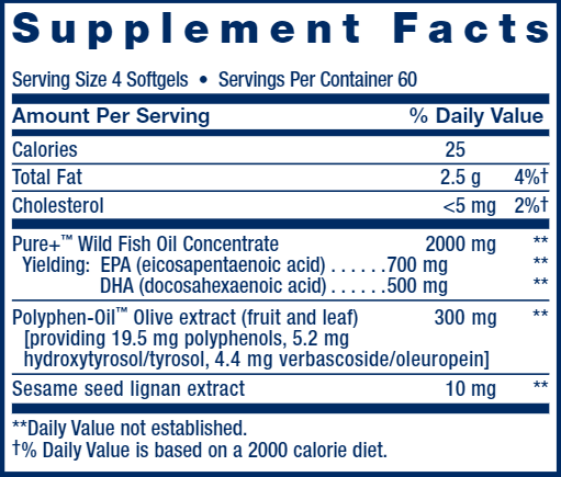 Have trouble swallowing larger fish oil softgels? This bottle of popular Super Omega-3 fish oil formula has EPA and DHA fatty acids, olive polyphenols and sesame lignans—in an easier to swallow softgel size.