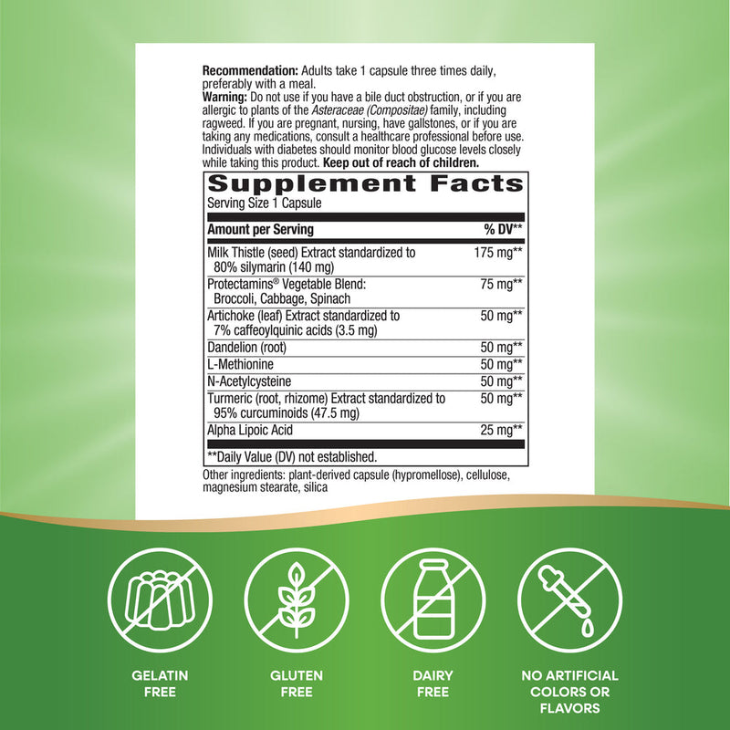 Your liver is essential for your general health. It filters blood, secretes bile, and neutralizes toxins. It can also enable your body to produce proteins and energy, store key vitamins and minerals, maintain hormone balance, and help facilitate digestion. Nature’s Way Super Thisilyn is made with a unique combination of milk thistle extract, which has traditionally been used to support liver health, and herbs, amino acids, and food-based nutrients.*