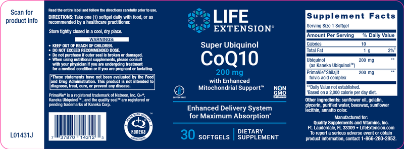 CoQ10 is essential for cellular energy production. Super Ubiquinol CoQ10 with Enhanced Mitochondrial Support™ is formulated with a highly bioavailable form of coenzyme Q10 called ubiquinol, and then augmented with shilajit to promote heart health, fight general fatigue, and more.