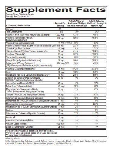 SuperNutes is a chewable children’s multivitamin and mineral supplement that provides essential vitamins and minerals needed to support a growing child’s development. As a complete multivitamin, SuperNutes includes high-quality nutrients to support a healthy micronutrient reserve. The great-tasting, natural lemon flavor makes achieving compliance easy.