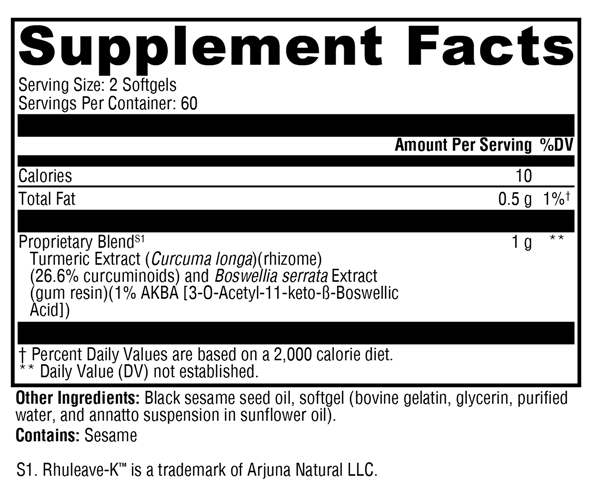 A combination of modern science and traditional wisdom, SynovX® Relief disperses quickly to provide targeted support for muscle and joint comfort. Turmeric and Boswellia extracts are combined in a black sesame oil base using patented technology to swiftly inhibit cyclooxygenase and lipoxygenase receptors.*